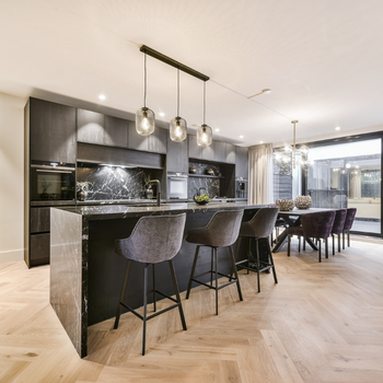 Armadio moderno modulare in legno massello di fascia alta armadi da cucina Backsplash in marmo acciaio MDF casa dispensa